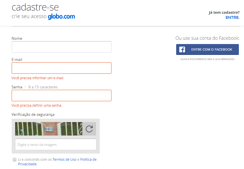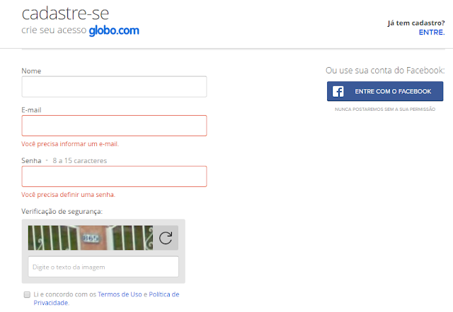 Em primeiro lugar, é necessário se cadastrar, preenchendo o formulário com os seus dados pessoais. Para ter acesso a este formulário, basta entrar na página oficial do Cartola, e clicar em “ENTRE NO CARTOLA”. Você poderá fazê-lo também através de seus dados do Facebook.