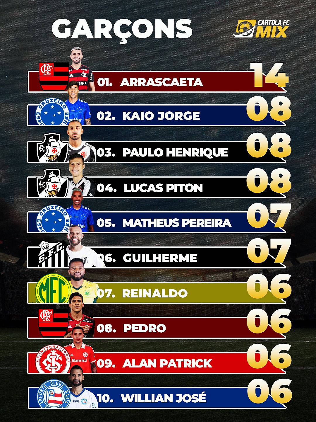 Acompanhe as dicas do Cartola FC Mix em todos os nossos canais para mitar nas rodadas!