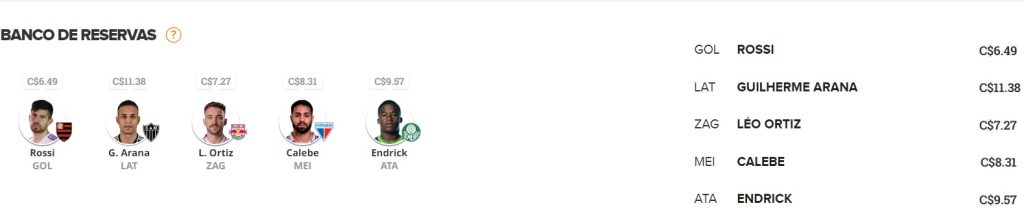Se o jogador do banco de reserva negativar, ele não entra em campo, mesmo se o jogador do time titular não jogar. Por isso, em algumas rodadas, deixamos no time titular o goleiro que não vai jogar, e escalamos o nosso goleiro no banco, pois se ele negativar, ele não entra.