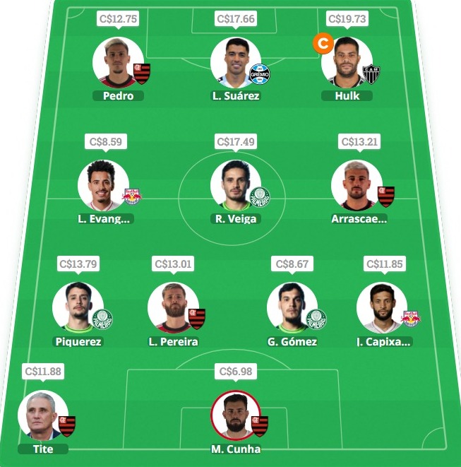 Esquema tático: 4-3-3 | Preço: C$ 155,61
