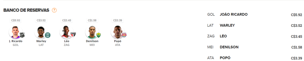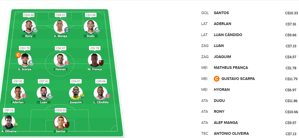 Esquema tático: 4-3-3 | Preço: C$ 99,38