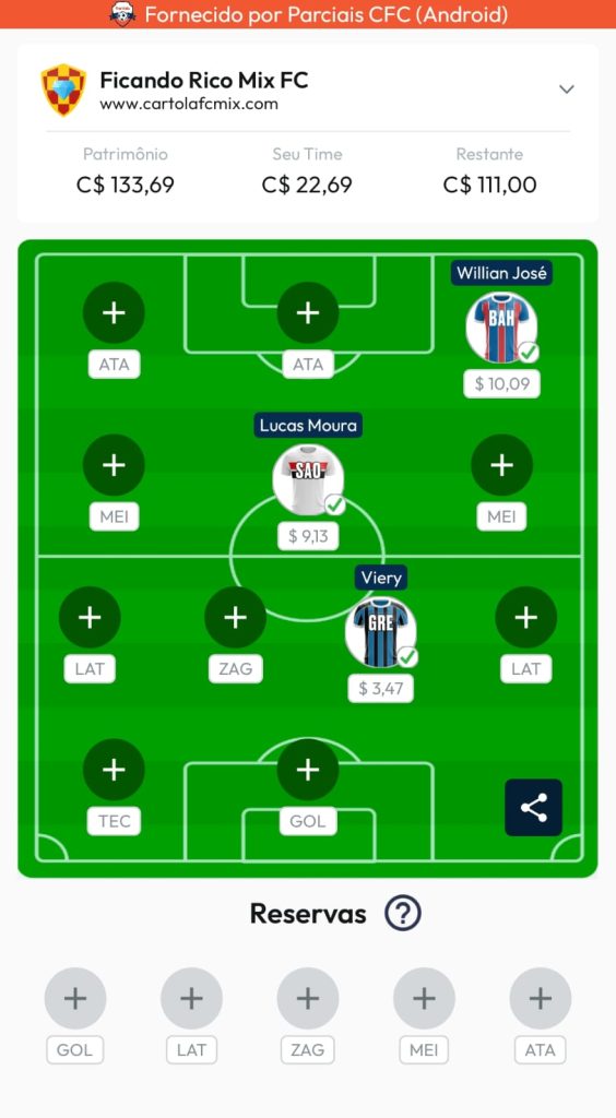 Então anota aí: priorize jogadores mais baratos e com potencial para ganhar cartoletas. Caso algum jogador vá estrear e ele seja barato, é uma ótima opção também para ganhar cartoletas.