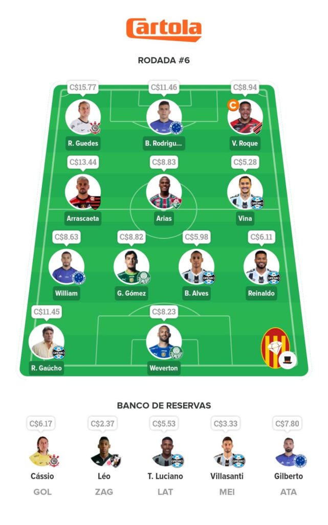 Na última rodada, o time mais rico do Mix valorizou 14,05 cartoletas e fez 101.43 pontos.
