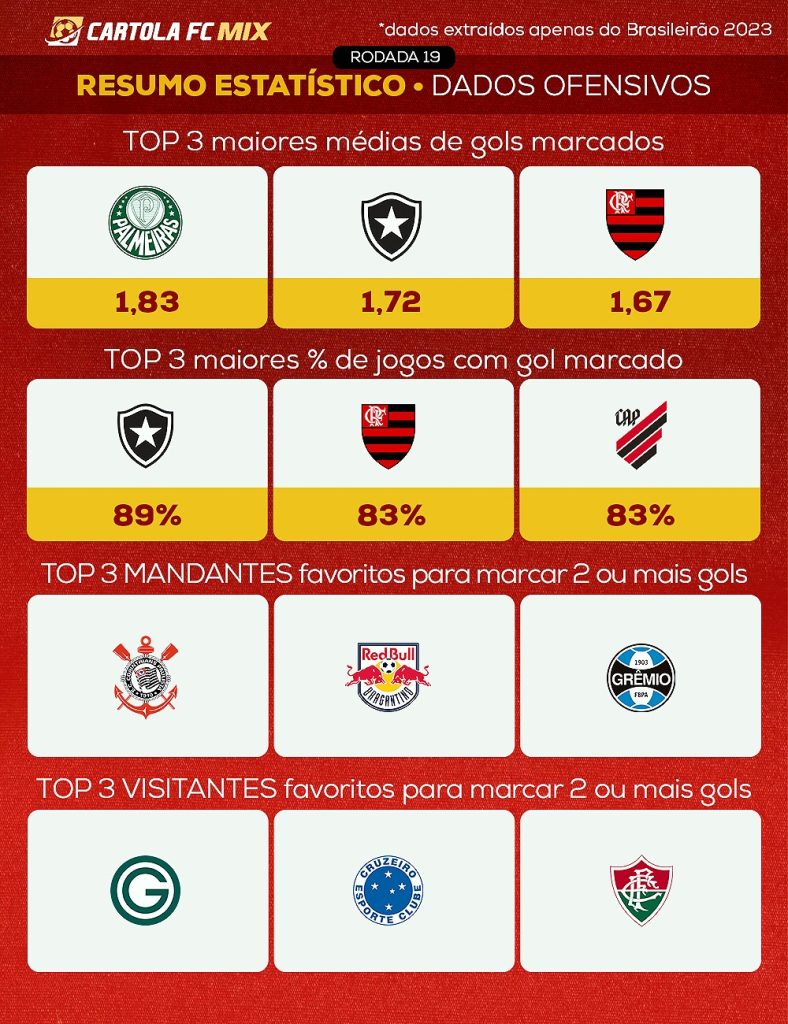 Já com bons números, começamos a analisar apenas os dados das equipes neste Brasileirão. Quanto ao jogadores, consideramos as últimas 5 partidas disputas para atletas com ao menos 3 jogos disputados.