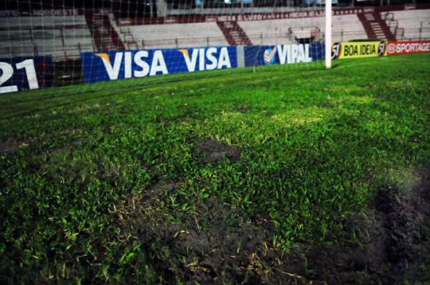 – Desta vez, a polícia não conseguiu impedir que o protesto acontecesse dentro de uma Arena da Copa. Lá em Pernambuco, a torcida do Náutico levou o seguinte cartaz: “Ou cavem buracos no campo ou devolvam os Aflitos. Não sabemos jogar em tapete!”
